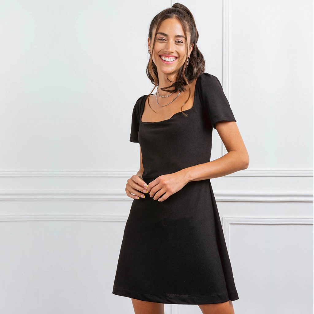 Vestido de Crepe sastrero elastizado con mangas abullonadas, con corte en la cintura y falda evase. Un vestido Comodín para usar en muchas ocasiones como ir a una fiesta, una cita o salida con amigas.Las prendas demoran en confeccionarse entre 3 y 10 días hábiles (Consultar por entrega inmediata)TALLESXSSMLXLXXLContorno Pecho859095100105110Contorno Cintura647075808590Contorno Cadera9095100105110115