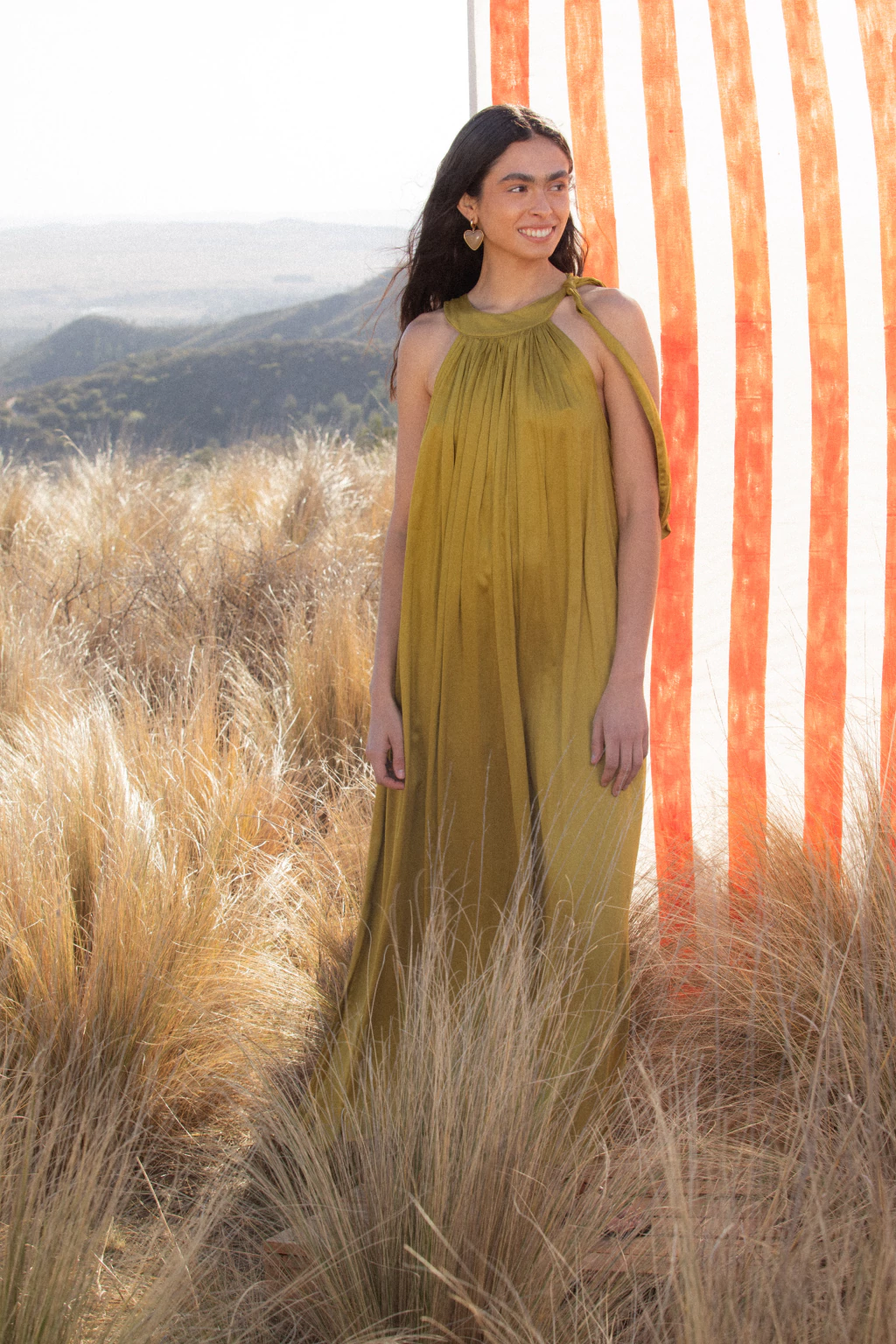 Descripción:- Vestido con cuello halter y lazo en un costado.- Tiene much vuelo, lo que o hace super fresco y comodo.- Este vestido es super versatil para usar tanto para un evento casual como para algo mas formal- Se encuentra realizado en viscosa satén 100% rayon.Talles y Medidas*:Talle 1Talle 2Talle 3Talle 4Ancho busto (contorno)100 cm104 cm108 cm112 cmLargo prenda133 cm135 cm137 cm139 cmContorno cadera ( estirado)180 cm184 cm188 cm192 cm* Dibujo a modo lustrativo.*Las medidas pueden variar unos centímetros.Cuidados:- Lavar con agua fría a mano, no refregar. O lavar en lavarropas en lavado LANA (es un lavado que da medio giro) siempre con agua fría.- No dejar en remojo ni utilizar limpiadores concentrados ni blanqueador.- Secar extendido.- Todas las telas que utilizamos son previamente chequeadas antes de confección para ver su reacción al lavado.Política de cambios & devoluciones:Tienes 30 días para realizar el cambio desde que se realizó la compra, 10 días para efectuar la devolución desde su envío. Tanto para cambio y/o devolución deben tener etiqueta y estar en perfectas condiciones. Los productos solo pueden ser cambiados por items de la misma categoría.* Si tenes dudas de cambios, envíos o de como comprar, podes chusmear la sección de cómo comprar.METODOS DE ENVIO:Envios al interior (todo el país):Los envíos tanto a Sucursal como a Domicilio en el interior se realizan a través de la empresa Andreaniy demoran entre 5 y 7 días hábiles desde que es despachado. Podes realizar el seguimiento en el siguiente link: https://virtual.andreani.com/?utm_expid=.sq43DutSSUubVNilG_BLGw.1&utm_referrer=Envíos por Cadeteria en CABA:El envío suele demorar entre 24 y 72hs hábilesEnvío GBA:Los envíos se realizan a través de Fast Mail. Una vez empaquetada la orden, el envío puede demorar hasta 72 hs hábiles. Podes rastrear tu pedido desde el siguiente link:https://epresislv.fastmail.com.ar/seguimiento