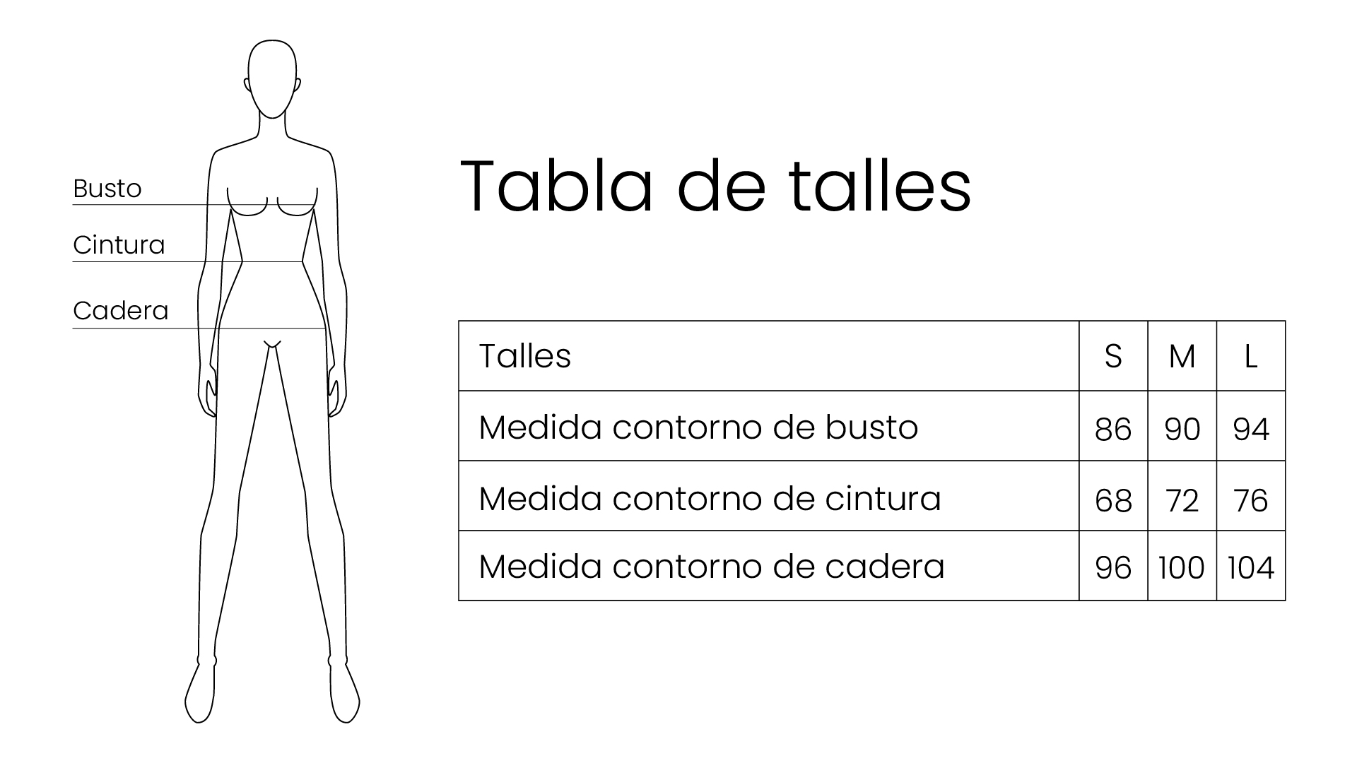 Nuestros diseños son producidos a partir de mordería basada en la siguiente tabla de talles. Ante cualquier duda podes consultar detalles de calce y largos finales de nuestras prendas en la descripción del producto, o comunícate con nuestras vendedoras a través de digital shopping.