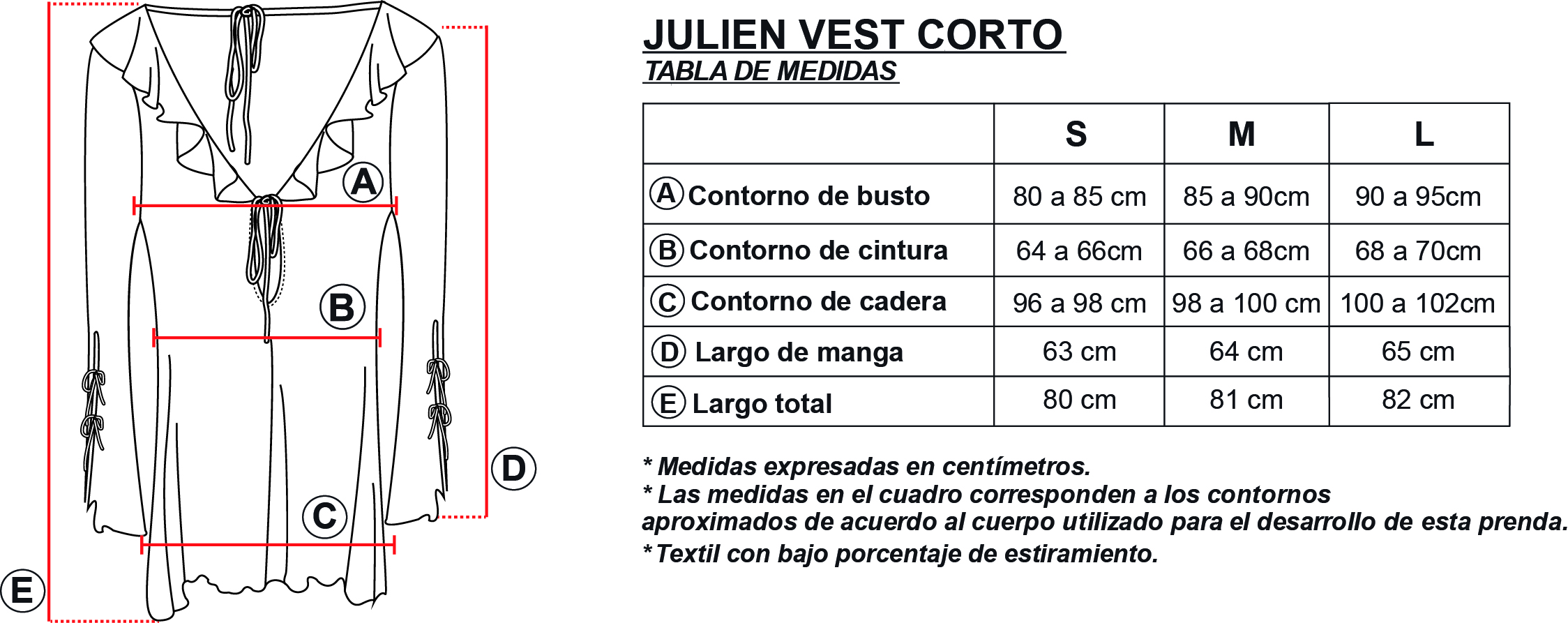 Vestido corto en microtul elastizado. Tiene volados en ambos escotes con lazos para regular su ajuste. Espalda con escote profundo y mangas semi oxford con lazos para atar. Terminaciones en roulotté. Prenda con alto porcentaje de estiramiento.
