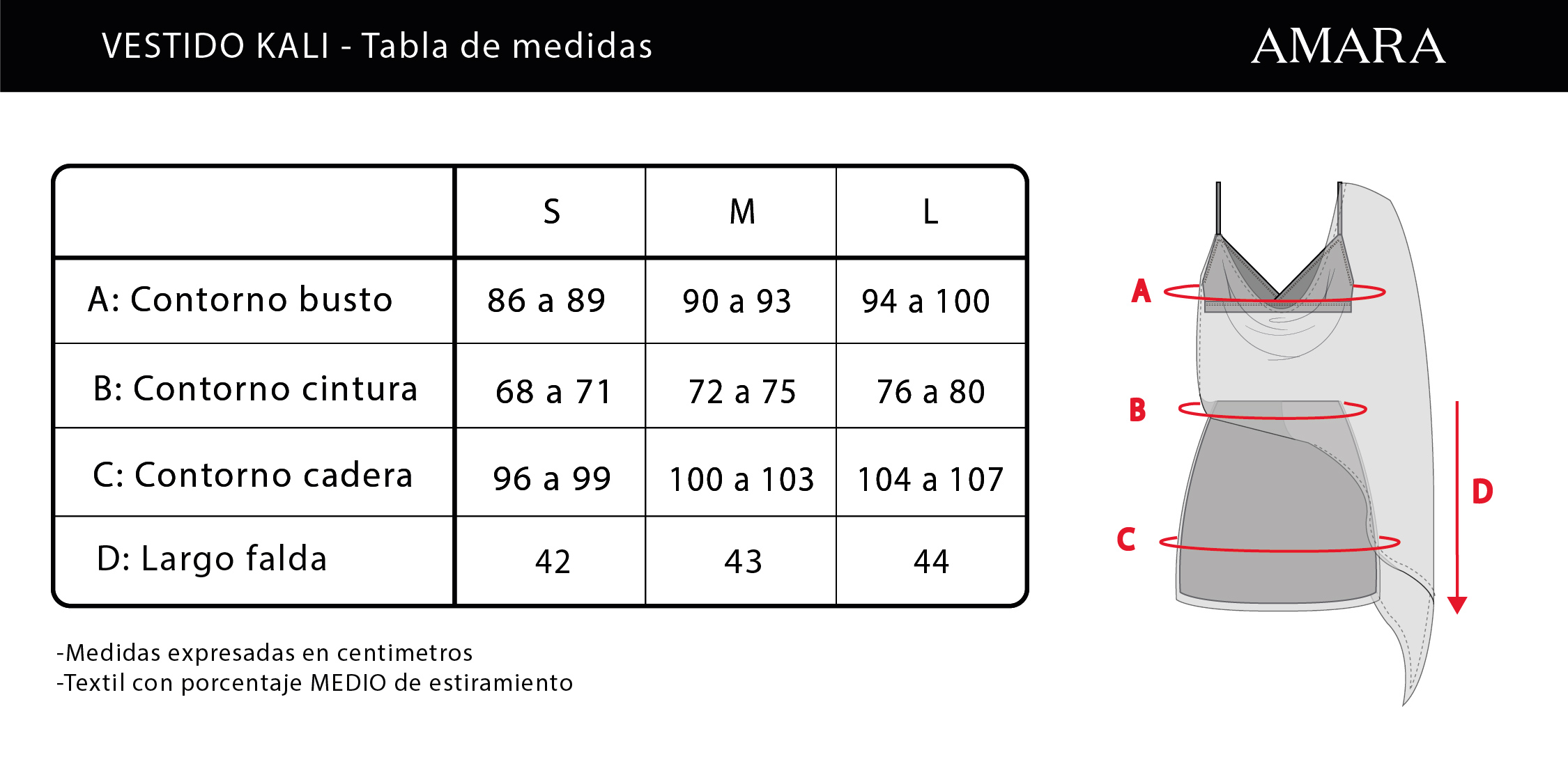 Se ajusta a la talla real. Diseño para un calce ceñido. El largo total de la falda en plano es de 42 cm para el Talle S; por talle aumenta 1 cm el largo de la prenda. La modelo lleva un talle S.