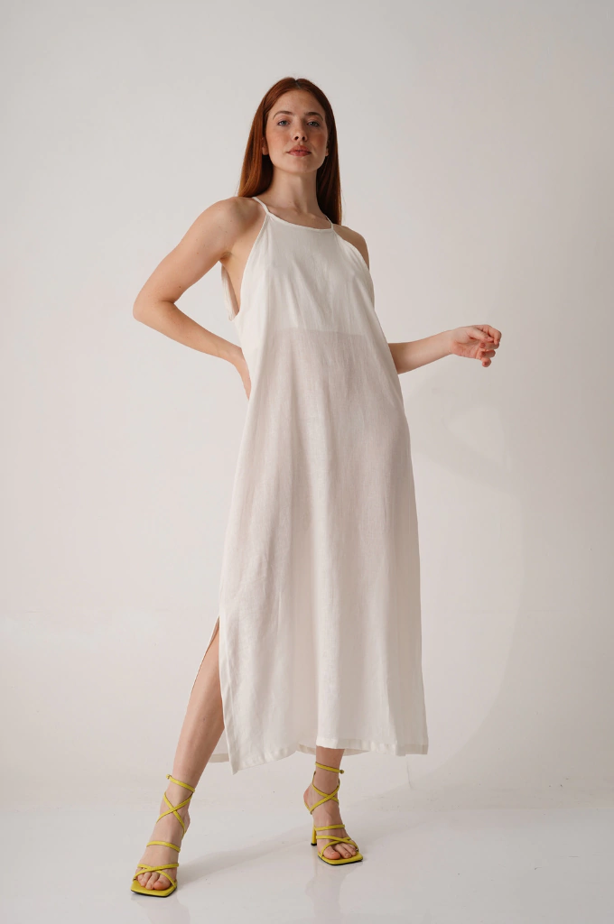 ULargo Bretel15Contorno de Busto95Largo Frente118Largo Espalda122Confeccionado en LinoComposición 45% Lino 55% Rayón* Todas las medidas están expresadas en centímetros.* Las medidas son estimadas y pueden variar en los procesos de confección de las prendas.Referencia Modelo: Camila H. mide 1..71 MtsMercedes mide 1.74 MtsTalle Prendas: S