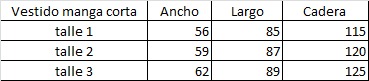 Las medidas son aprox porque la tela cede, el ancho es la mitad del contorno del busto, recomendamos medir una prenda en uso y comparar.