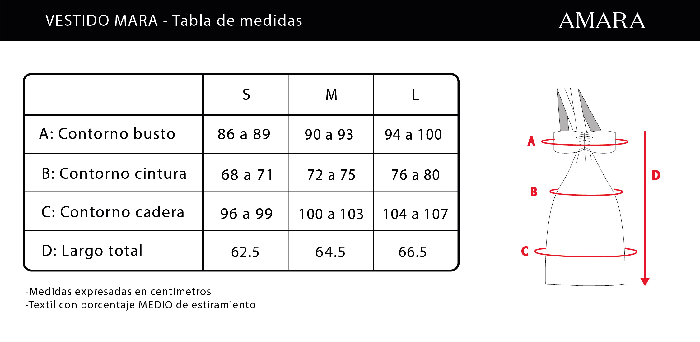 Se ajusta a la talla real. Diseño para un calce ceñido. El largo total de la prenda en plano sin contar los breteles es de 62,5 cm para el Talle S; por talle aumenta 2cm el largo de la prenda. La modelo lleva un talle S.