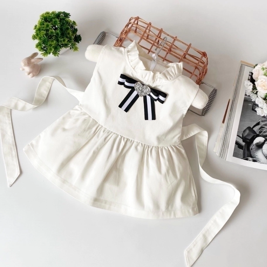 Vestido de gabardina con aplique de moño y corazón strass, botones en la espalda y lazo en cintura.Material: gabardina.Disponible en talles:6-12 meses .Largo de vestido 42 cm. y ancho de pecho 28 cm.1-2 años.Largo de vestido 46 cm. Ancho de pecho 30, 5 cm.2-3 años.Largo de vestido 49 cm y ancho de pecho 32 cm3-4 añosLargo de vestido 52 cm y ancho de pecho 34 cm.4-6 años:Largo de vestido 56 cm. y ancho de pecho 36 cm.