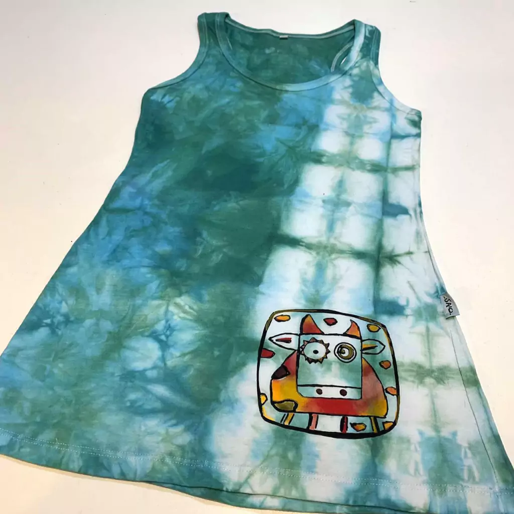 Vestido de algodón pintado y teñido a mano.