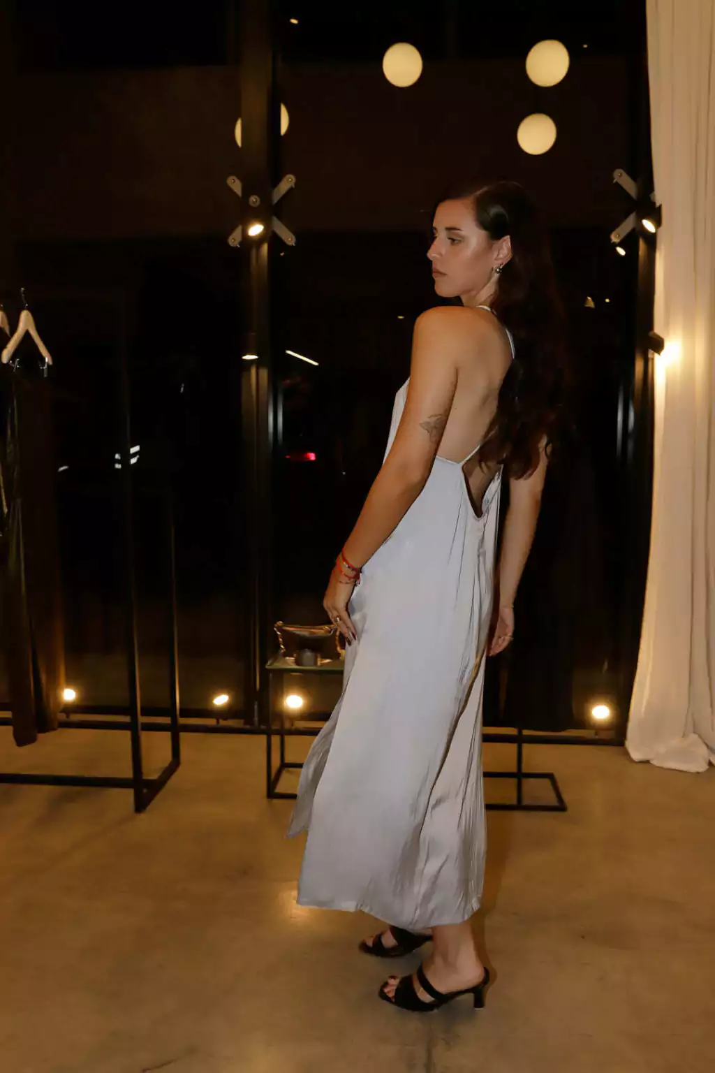 Descripción:Vestido largo OASIS, escote alto, cruzado y con espalda baja, tajos laterales. posee vista en parte delantera, no transparenta. Confeccionado seda premium, textil suave al tacto y liviano con caída, de corte amplio. Combínalo con un saco KYOTO para un look de noche .Colores:Negro Gris. VerdeTalles disponibles:S/1 M/2 L/3Guía de talles (*)TalleS:Busto 92 - Largo 115 - Sisa 48TalleM: Busto 98 - Largo 117 - Sisa 50TalleL: Busto 104 - Largo 119 - Sisa 54(*) Talles aproximados a medidas realesCuidados:Lavar y enjuagar a mano con jabon neutro: no usar suavizante (para no arruinar el material) ; recomendamos los colores claros guardarlos separados de las prendas de color para evitar el contacto (si las prendas desprenden color, el material puede mancharse); secar en plano; no usar blanqueador.NO PLANCHAR.