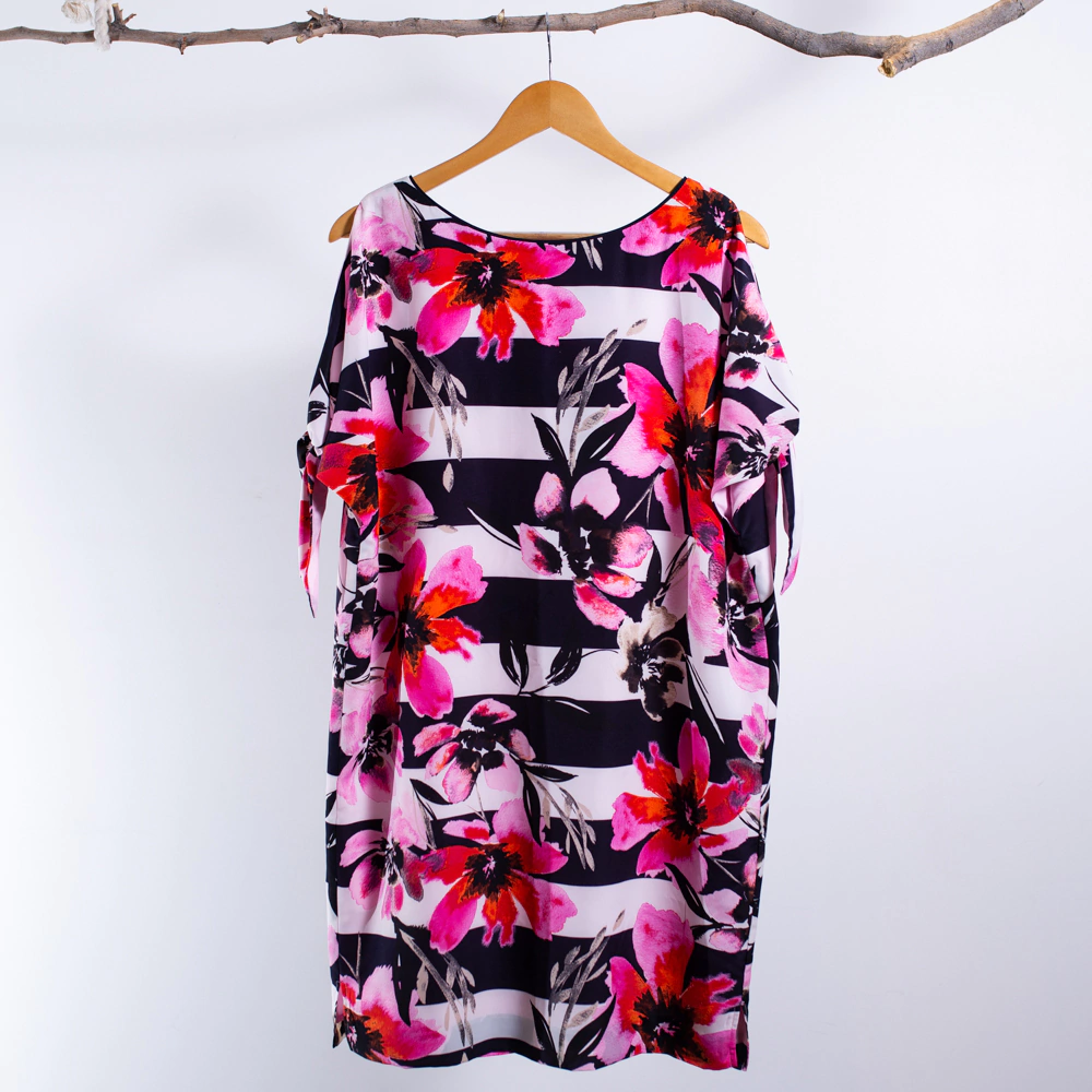 Vestido manga corta con flores en negro, rosa, rojo y blanco00084-A0690