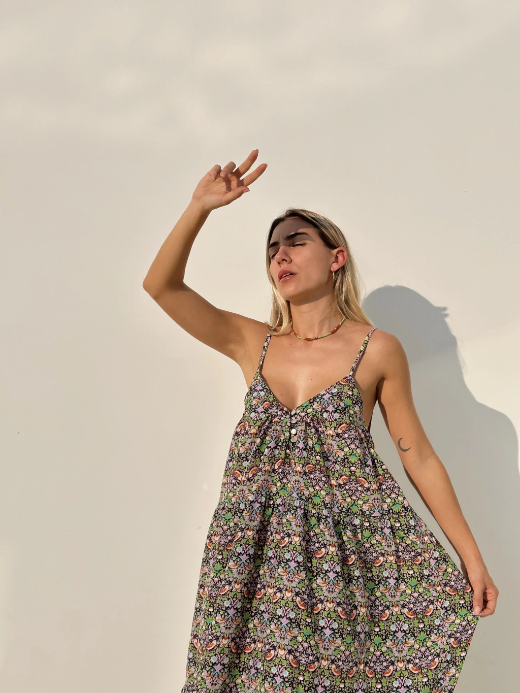 Vestido amplio con volados en falda, botones en delantero y breteles finos.Medidas: contorno de busto: 92 cm., largo de la prenda con bretel: 142 cm.Composicion: seda estampada¿CÓMO CUIDAR MEJOR TU PRENDA MOLLI?Es recomendable lavar a mano con agua fría.No dejar en remojo, no retorcer la prenda para quitarle el excedente de agua.De ser necesario el planchado, siempre hacerlo con temperaturas bajas.Nuestras prendas no se encuentran pre lavadas el textil puede encoger y pueden desprender color hasta dos o tres lavados.