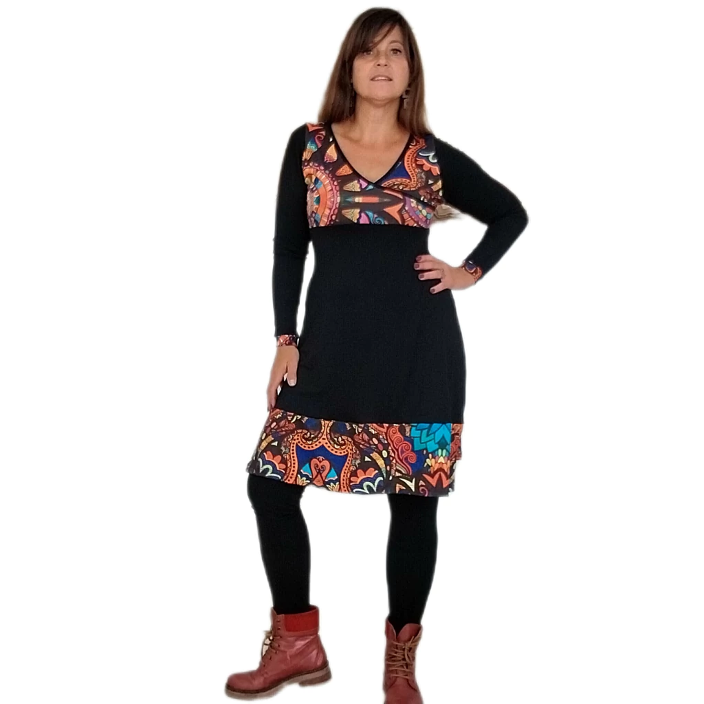 Vestidos en modal soft combinados con diferentes estampadosManga larga