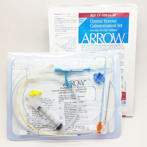 via central 1 lumen selding 14 g 20 cm s jer c pt blue arrow