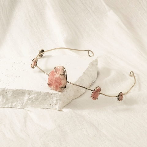Vincha trabajada a mano con 4 mini rodocrositas y una rodocrosita grande.Esta pieza es única, fue elaborada artesanalmente. Consultanos para ver si tenemos la misma pieza de la foto.En caso de querer personalizar la misma, escribinos! Trabajamos piezas a medida.A tener en cuenta, los tonos de las piedras pueden variar en la fotografía. Ante la duda acercate a nuestros locales o comunicate con nosotras!