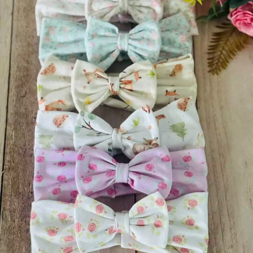 PACK DE 6 VINCHAS CONFECCIONADAS EN TELA DE ALGODON. APLIQUE MOÑOSURTIDO DE COLORES