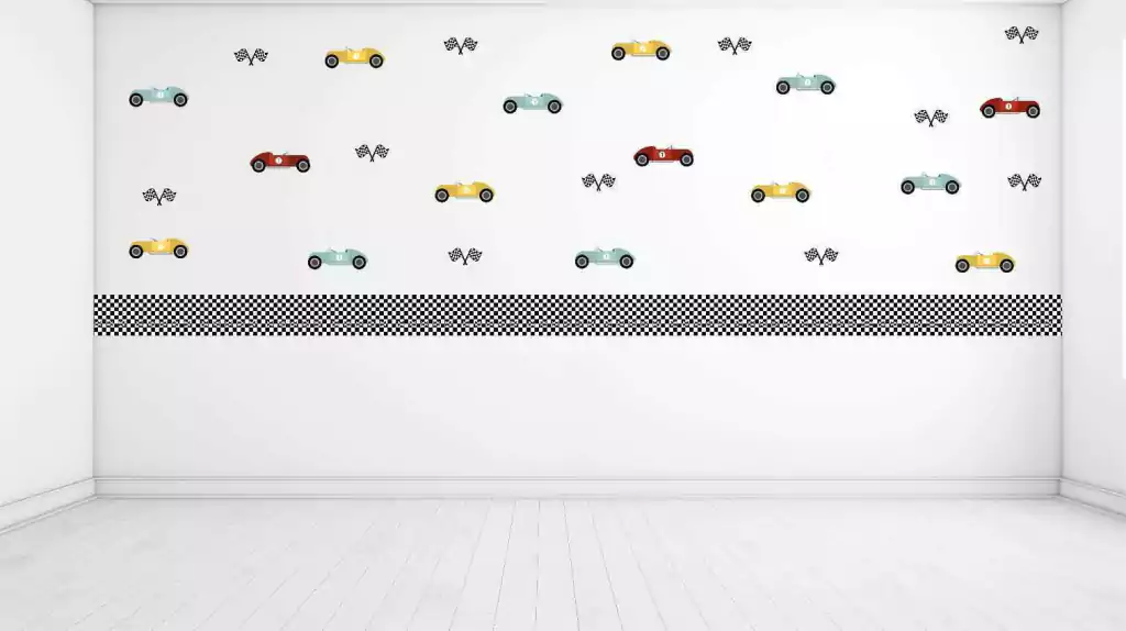 Planchas de vinilos de corte listos para colocar. Ideales para decorar fácil y rápido esa pared vacía.La plancha se compone de 33 autos de carrera de 10 x 4 cm y 20 banderas de 5,5 x 3 cm.Con 2 planchas podes cubrir una pared de 3 x 2,20 cm de forma espaciada.Ideal para combinar con una guarda de carrera y dejar la pared hermosa!¿Cómo se aplican?El sticker ya viene cortado listo para colocar sobre la pared seca y limpia, libre de polvillo. Podés hacer las combinaciones que más te gusten.