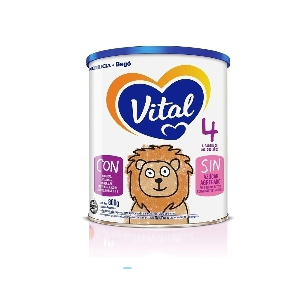 VITAL 4 POLVOLeche modificada en polvo para niños a partir de los 2 años. Libre de gluten. SIN T.A.C.C.CON: BIFIBRAS, VITAMINAS, MINERALES, PROTEINAS, CALCIO, HIERRO, OMEGA 3 Y 6. SIN: AZUCAR AGREGADO, COLORANTES, CONSERVANTES Y SIN TACC.¡COMPRALO