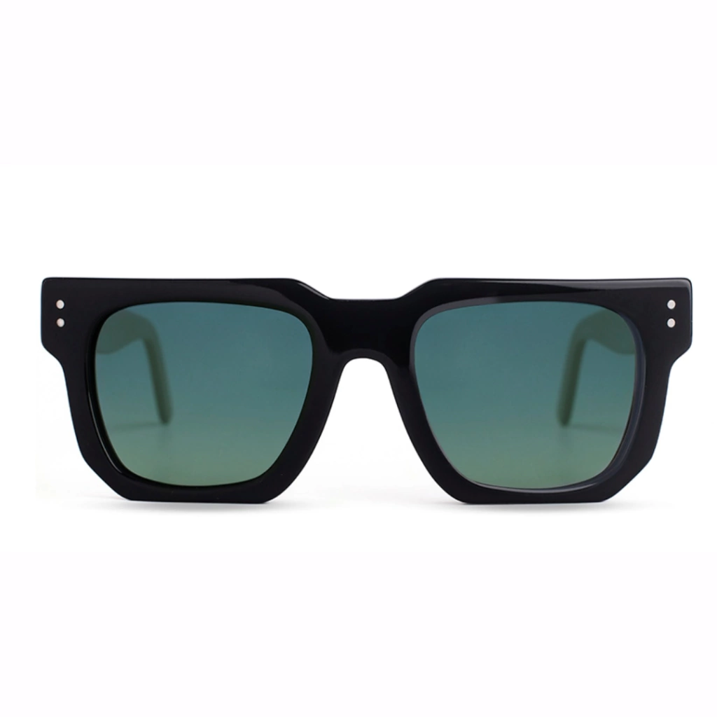 Producto:Anteojo SolMarca:VulkMaterial:AcetatoMedidasAro-Puente-Largo Patilla:51-22-145mmAncho:145mmAlto:48mmFlex:NoDescripción:Frente negro brillo con Cristales Azul y Verde Polarizado/Patilla negro brillo.Origen:Industria ArgentinaIncluye estuche propio de la colección.