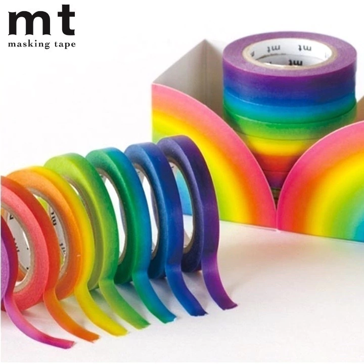 QUE RECIBIS: una cajita rainbow con 7 rollos de cinta washi japonesa mt Rainbow.