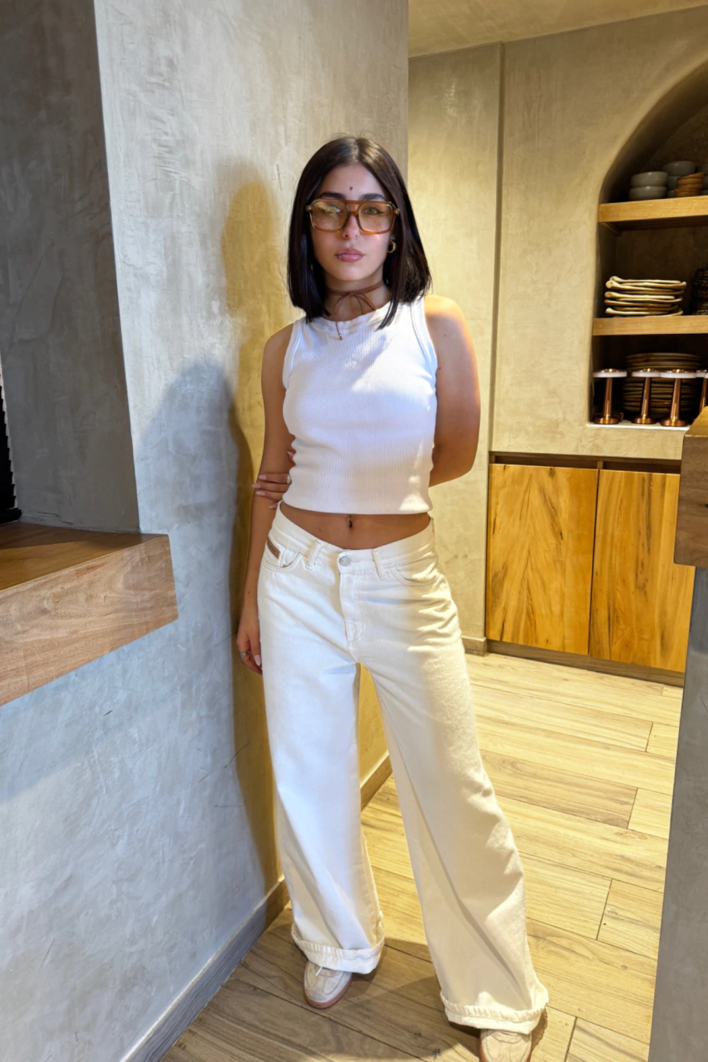 Pantalón wide leg, piernas anchas y sueltas.Cintura: Tiro alto/medio.Composición: 100% algodón.Color: Negro/Cemento/Chocolate/Natural/Negro wash/arena claro