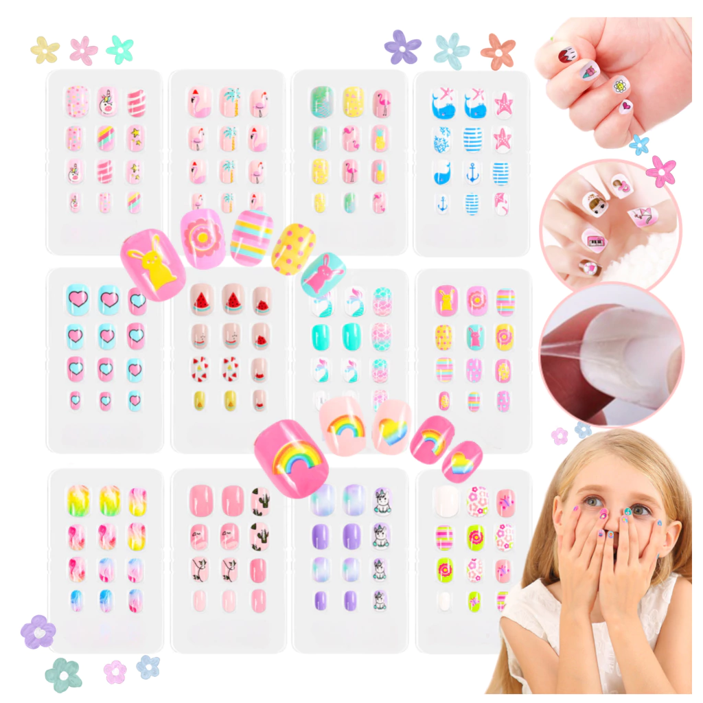 EL PRECIO CORRESPONDE A 12 UNIDADES DE CAJITAS DE UÑAS POSTIZAS INFANTILES!!Los colores y modelos se envian al azar, no se pueden elegir.