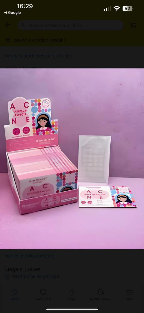 EL PRECIO CORRESPONDE A 3 SOBRES!!Cada sobre contiene 24 pc para uso de día y de noche.8 x 8mm8x 10mm8x12mmparche de tratamiento para acne, seca y elimina el acne rapidamenteEs muy fácil de usar y su formato resulta muy cómodo, ya que incluye parches de diferentes tamaños.• Evitan que queden marcas y ayudan a que cicatricen bien.• Puede utilizarse encima de heridas, granitos de acné, espinillas y otras marcas o imperfecciones.• Pueden utilizarlo adultos y adolescentes.• Son parches de un solo uso.DURACION DE 8 A 12HSModo de empleo:1. Limpiar y secar la zona a tratar antes de colocar el parche.2. No utilizar ninguna loción o crema antes de su uso.3. Cubrir la imperfección con el parche adecuado.4. Retirar cuando sea necesario dura DE 8 A 12 HSNO TIENE CAMBIO NI DEVOLUCION POR MOTIVOS DE HIGIENE