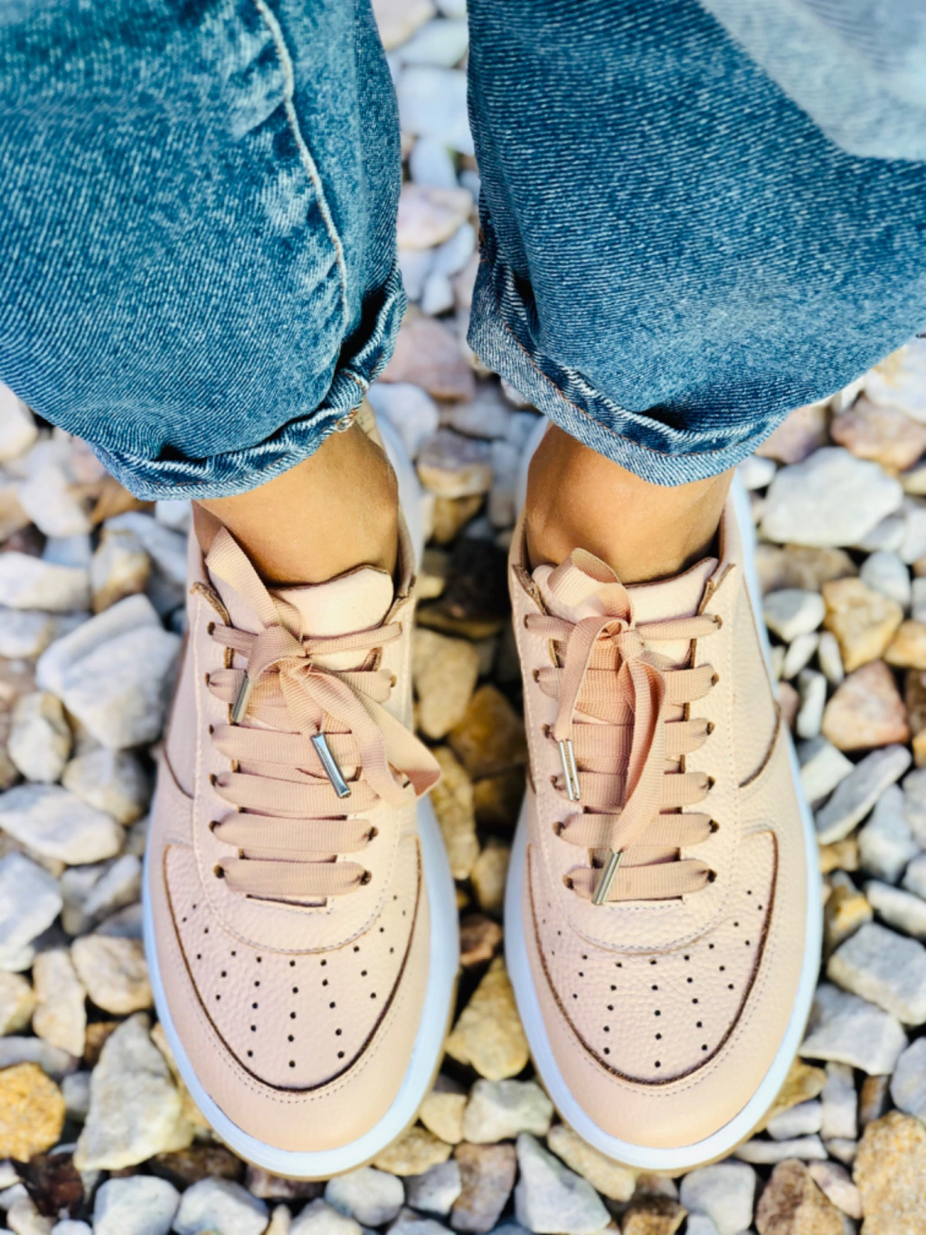 Zapatilla de cuero vacuno color nude.