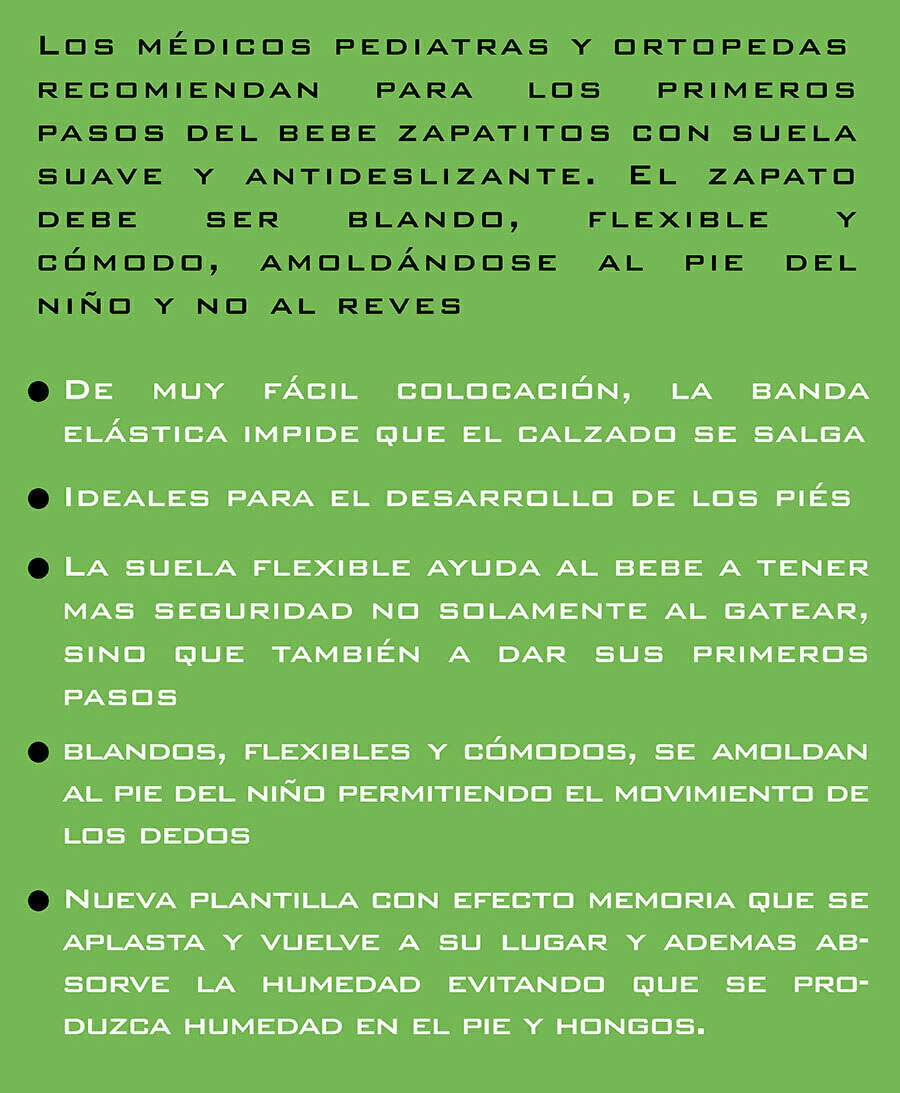 Se flexionan y se doblan con cada paso. Su suela permite que los pies se agarren cuando comienzan a caminar y les da el suficiente espacio para que los pies crezcan de manera natural.