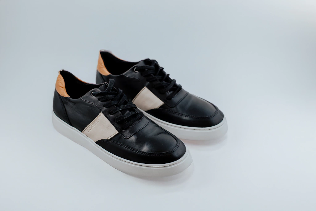 ZAPATILLA DE CUERO ACORDONADA CON DETALLE TIRA A LOS COSTADOS A CONTRA TONOBASE LIVIANA EVA DE BUEN CONFORT