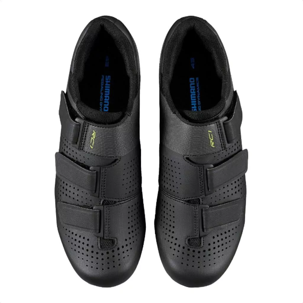 Zapatilla Shimano de ruta RC100 - NegroLa estructura de empeine envolvente reduce el solapamiento y proporciona un ajuste perfec to.Piel sintética con textura de malla que crea un ajuste cómodo y un perfil de ciclismo.Tres resistentes tiras de velcro reparten la fuerza de apriete por toda la parte superior del pie.Suela de nylon reforzada con fibra de vidrio ligera para mejorar la transferencia de potenciaResistentes almohadillas de talón anchas que proporcionan estabilidad al caminar.Tiras de cierre que liberan la tensión en el punto más alto del pie.Peso: 238GRigidez suela 6Compatible con pedales EPDRS500Medida de plantilla en centimetros:Talle 36: 22,5cmTalle 37: 23cmTalle 38: 24cmTalle 39: 24.5cmTalle 40: 25,2cmTalle 41: 25,8cmTalle 42: 26,5cmTalle 43: 27,2cmTalle 44: 27,8cmTalle 45: 28,5cmTalle 46: 29,2cmTalle 47: 29,8cm