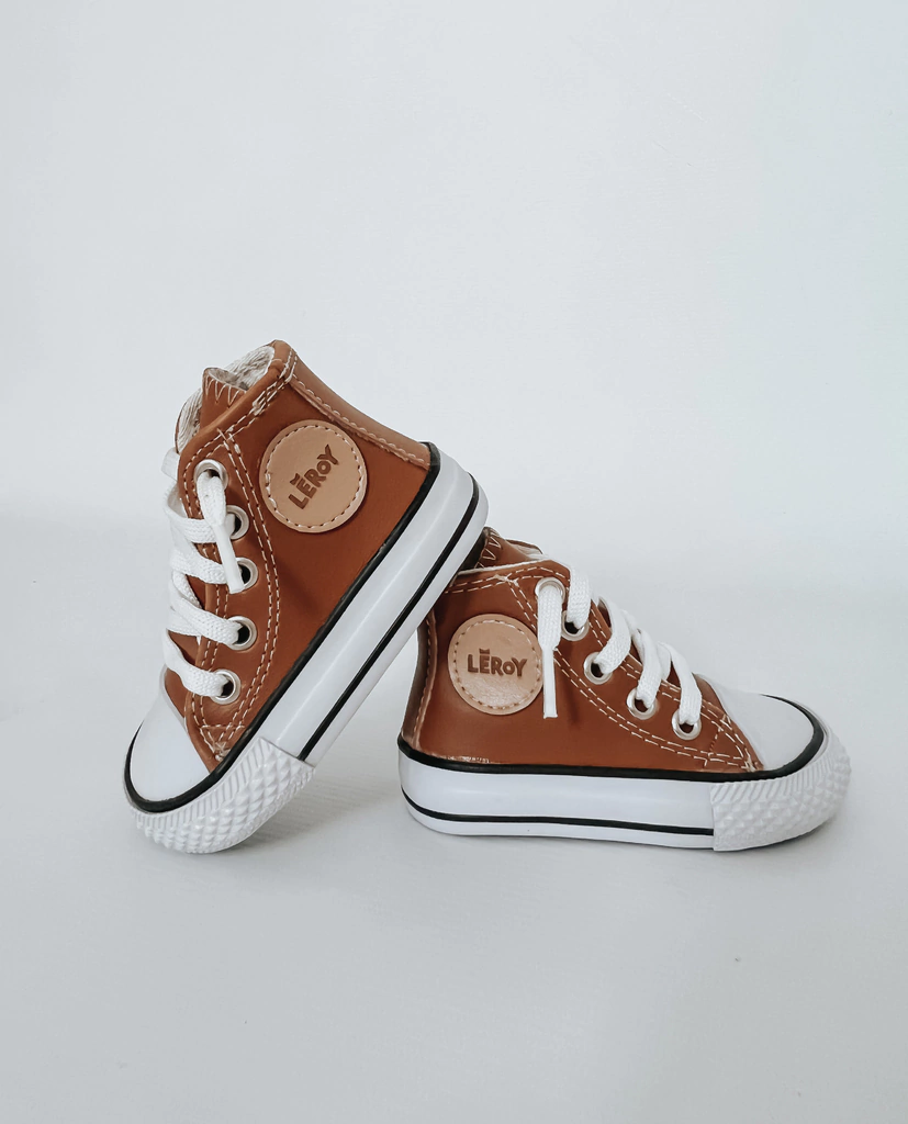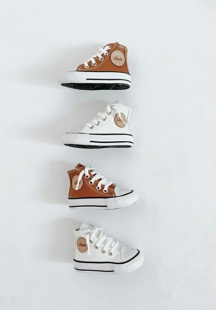 La etiqueta de cuero añade un toque único y sofisticado, destacando su diseño atemporal. Resistentes y fáciles de limpiar, estas zapatillas son ideales para completar cualquier look con comodidad y un toque canchero. ¡Un básico imprescindible para las aventuras de los más pequeños!