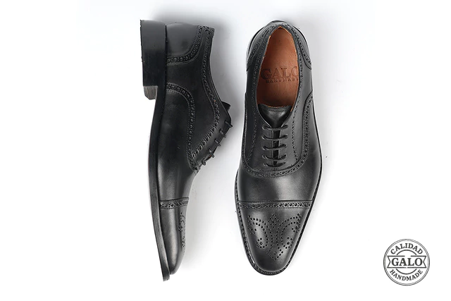 Zapato de cuero LEON en color negro, diseñado y confeccionado a mano por Galohandmade con 100% cuero vacuno legítimo.Este calzado artesanal ofrece un estilo atemporal y clásico, combinado con comodidad y larga durabilidad. Tipo de horma: chica.