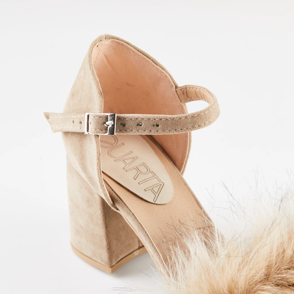 Sandalias de taco de 6,5cm, muy cómodas y con un taco bajo ideal para no tener que sacártelos en todo el día.Capellada de piel sintética imitación de animal y y gamuza vegana.Taco de 6.5cm de altura y cinturón ajustable con hebilla de zamac para el tobillo.Forro en cuerito sintético suave.Para la realización de este producto no se utilizó ningún material de origen animal.La horma de este modelo es cumplida. Los números son reales. Acá está la tabla de medidas por cualquier duda. La medida que se expresa en la tabla es la medida de plantilla, en los zapatos de taco siempre es recomendable que te vayan justos, y no grandes. Elegí el número que uses en el resto de los calzados.Talle QUARTAMedida de Plantilla3522.5 cm3623.3 cm3724.3 cm3825.0 cm3925.6 cm4026.3 cm4127.0 cmPREGUNTAS FRECUENTES¿Cómo comprar?Acá mismo en la página siguiendo los pasos, podés pedirlas yrecibirtu compra directoen tu casa.¿Cómo es el envío?Tenemosenvíos a todo el país, puede ser por mensajería o por correo.¿Puedo ir a probarme?Sí, tenemos unshowroomen Martinez.¿Cómo las puedo lavar?Si están a penas sucias se les puede aspirar el polvo. Sino, directamentelavarlas con agua y jabón. Lo importante esno aplicarles calor, y dejarlas secar al aire libre.