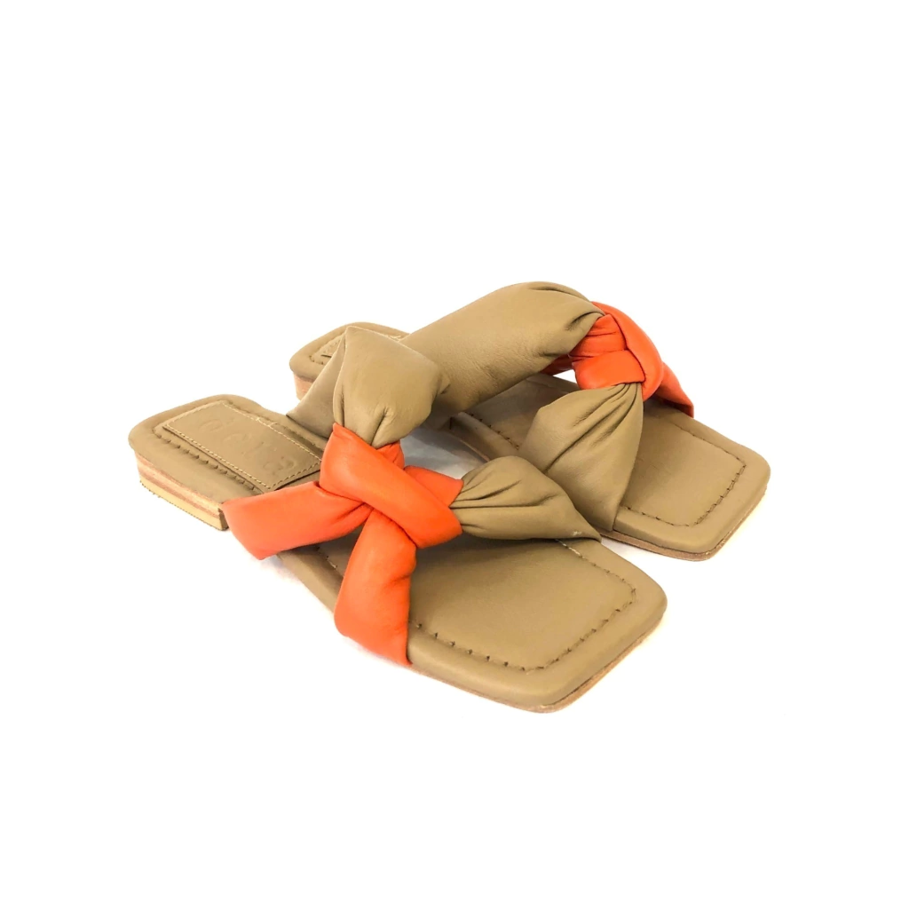 CAPELLADA Y FORRADO EN CUERO 100%BASE DE SUELA, TIRAS DE CUERO ENLAZADAS EN NUDO