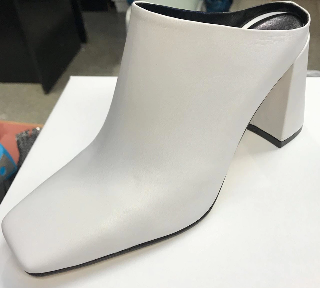 ZuecoCRISTALnapa off whithe con taco forrado 7 1/2 y punta cuadrada.