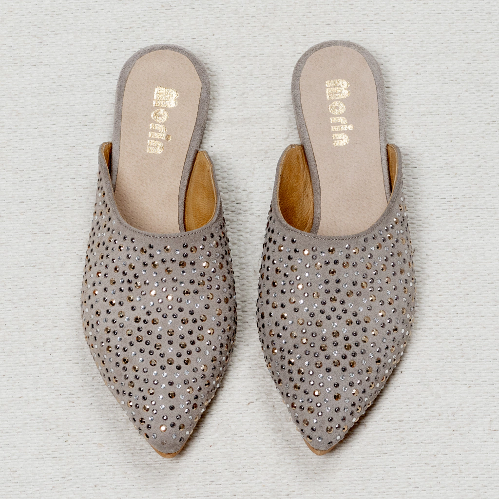 Los productos discontinuos no tienen cambio ni devolución. Para evitar errores con los talles escribinos ¡estamos para asesorarte!Los zuecos Indira tienen un diseño boho chic súper delicado, perfecto para añadir un toque de estilo a cualquier conjunto. Con una variación de colores neutros y sin puntera, estos zuecos son blandos y se amoldan cómodamente a tu pie, ofreciendo un calce perfecto.Fabricados con capellada y forrería 100% de cuero argentino, los zuecos Indira destacan por su durabilidad y estilo. La capellada en gamuzon (descarne) adornada con multistrass Gold Rose añade un toqueglam. La plantilla entera acolchada proporciona mayor confort, mientras que la suela de goma y la altura de taco de 1.5 cm garantizan estabilidad y soporte. Además, el diseño incluye unos milímetros extra para permitir el movimiento del pie sin que el zapato se descalce.Los zuecos Indira combinan moda y funcionalidad, convirtiéndose en una opción ideal para el uso diario.#MorinTip:Protege la gamuza aplicando un impermeabilizante de calzado cada 15 días para mantenerlos en perfectas condiciones. Combínalos con tus outfits favoritos para un look boho chic y cómodo durante todo el día.